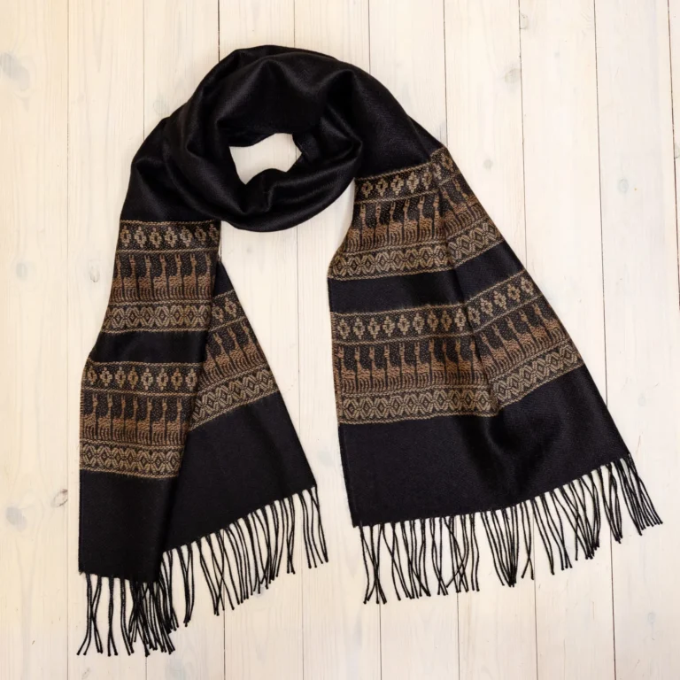 Beebialpaka lõng on erakordselt pehme ja siidine ning tuntud oma soojapidavuse poolest, jäädes samal ajal hingavaks ja kergeks. Sall langeb kaunilt, ei torgi ega kraabi ning sobib hästi ka tundlikule nahale. Peen kude ja rahulik tekstuur toovad esile materjali kvaliteedi ning loovad elegantse ja ajatu ilme.