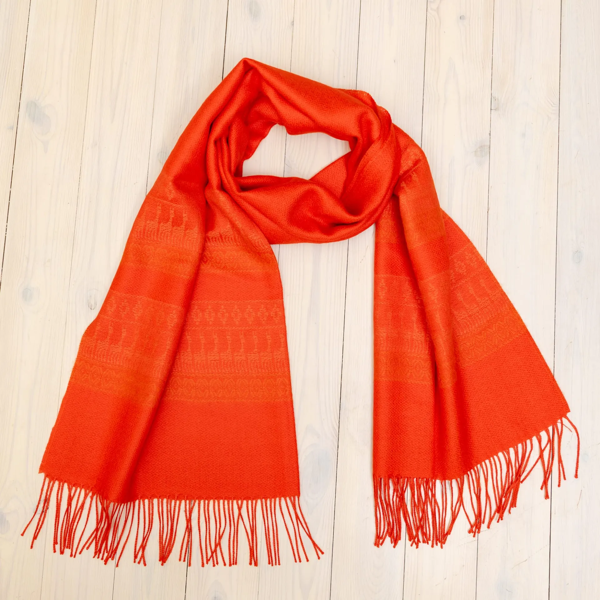 Narmastega viimistlus lisab sallile liikuvust ja pehmust, andes sellele kergelt boheemse, kuid siiski põhjamaise ja vaoshoitud iseloomu. See on aksessuaar, mis sobib nii igapäevaseks kandmiseks kui ka pidulikuma rõivastuse juurde, olles samal ajal praktiline ja esteetiline.