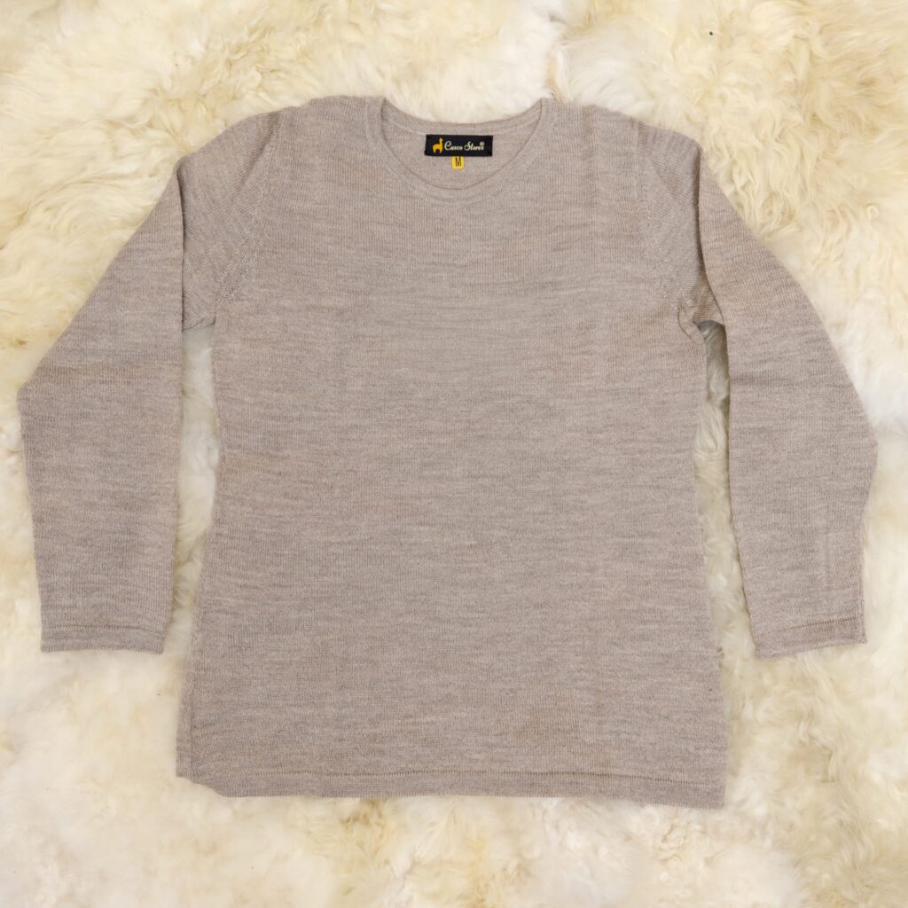 Beebialpakavillast sviiter on erakordselt pehme ja soe kudum, loodud igapäevaseks kandmiseks põhjamaistes oludes. Ajatu lõige ja looduslik luksus ühes esemes.