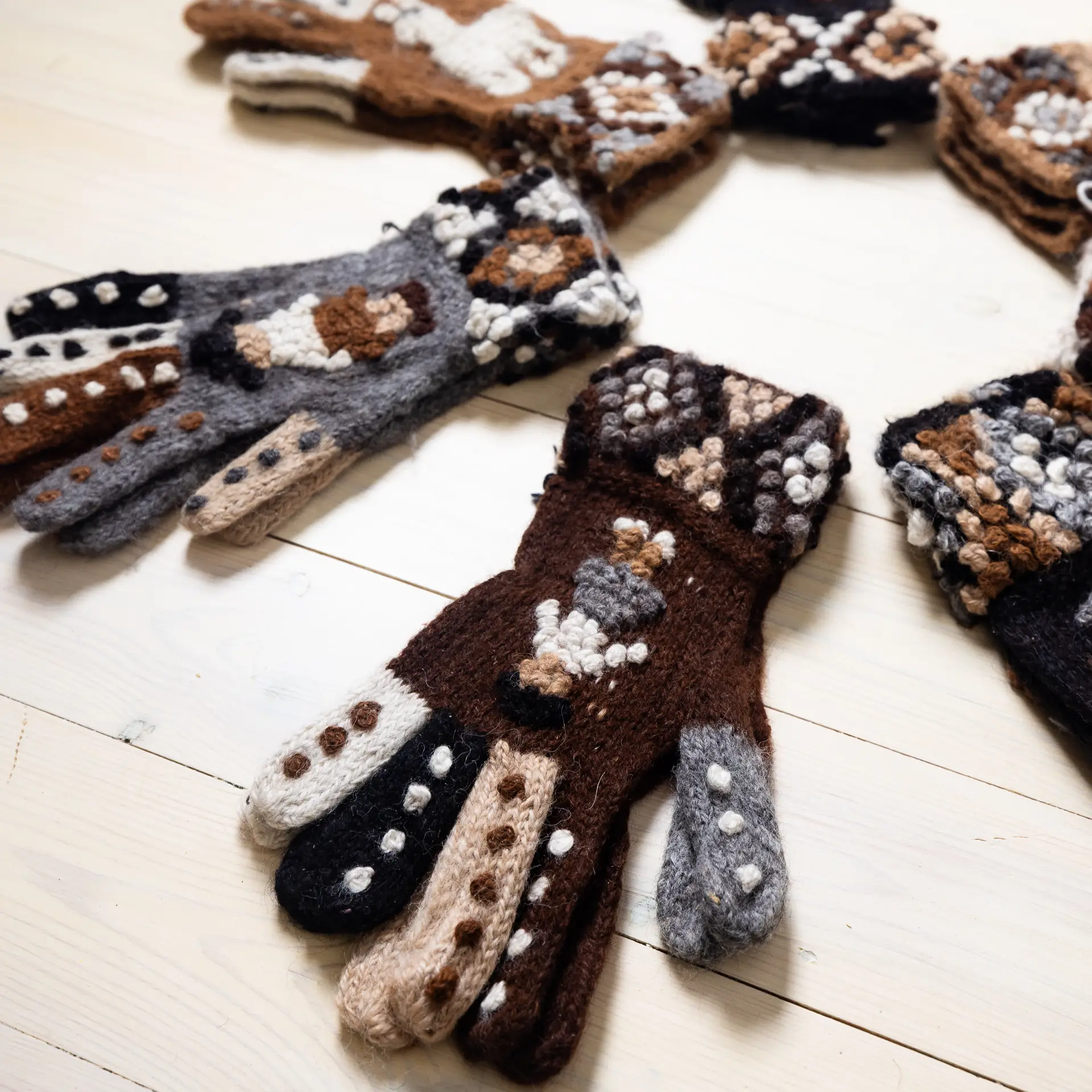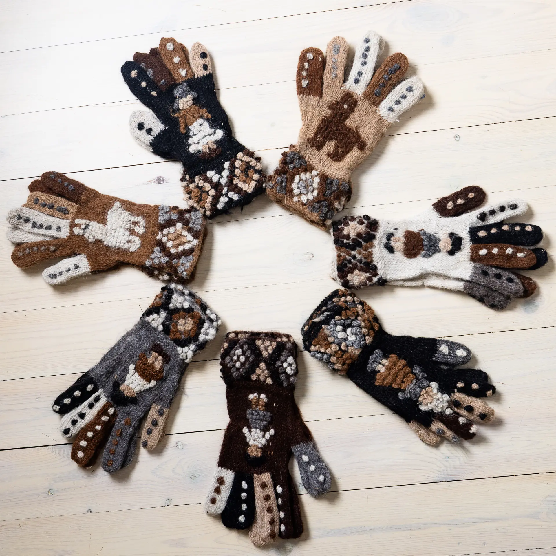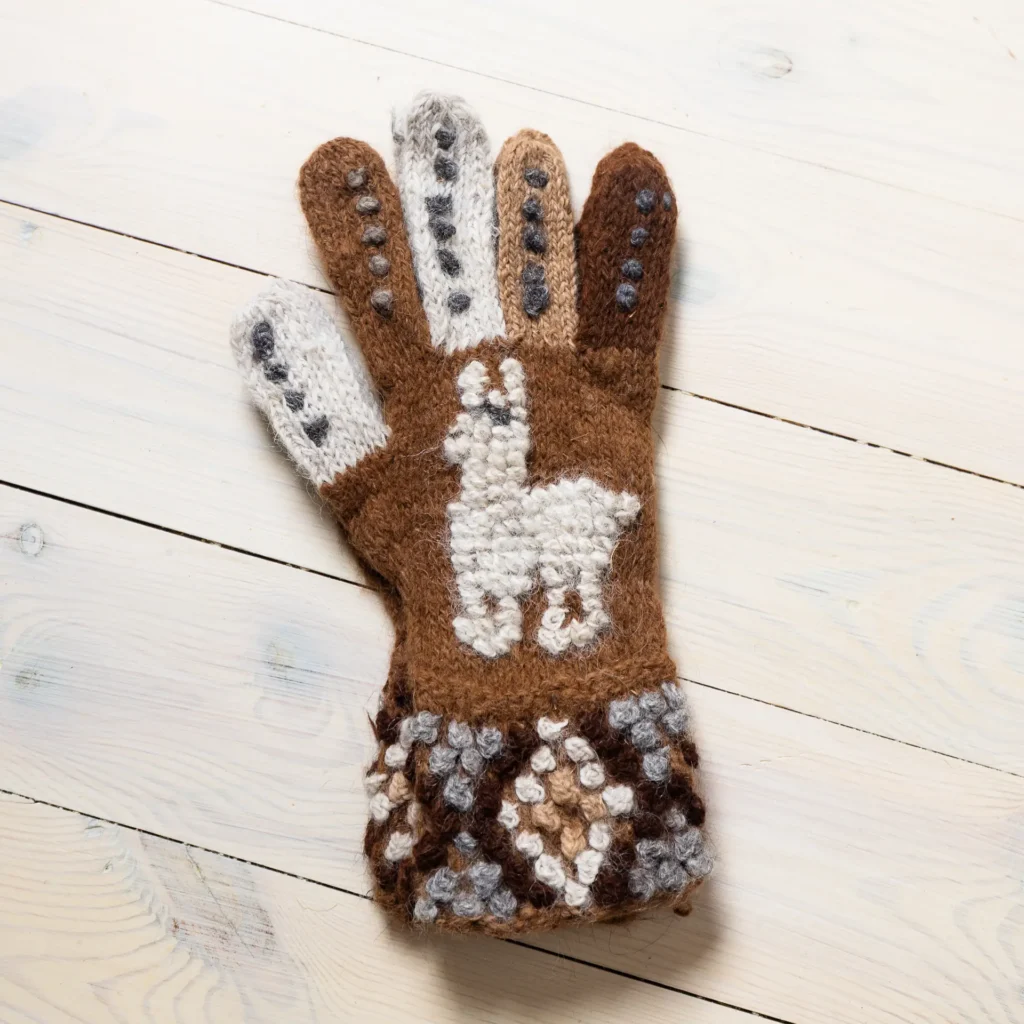 Käsitööna valmistatud alpakanahast kindad, mis ühendavad Andide traditsioonid, loodusliku soojuse ja unikaalse mustrimaailma. Iga paar on omanäoline ja ajatu.